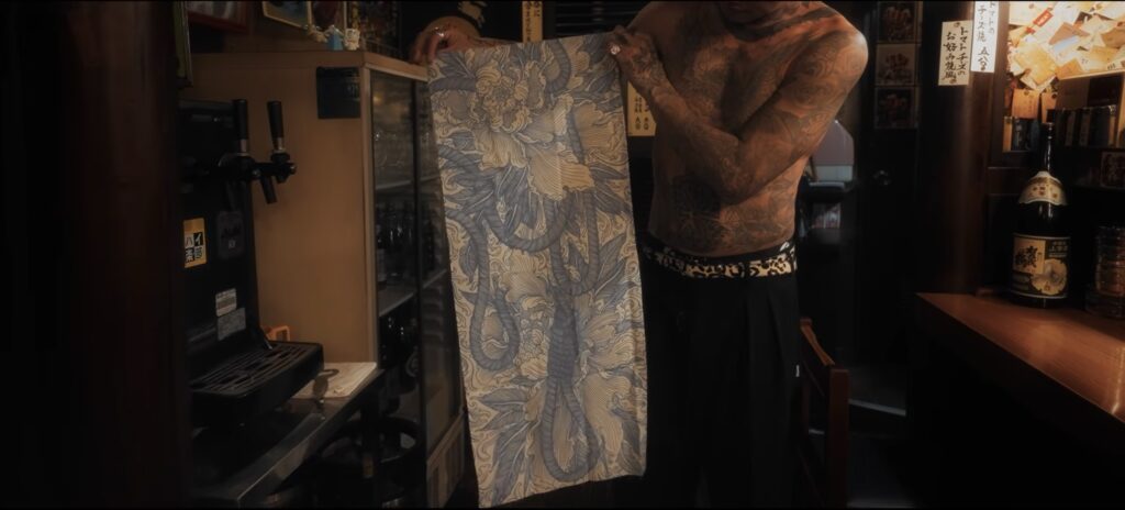 自身のタトゥーを刻んだ手拭い