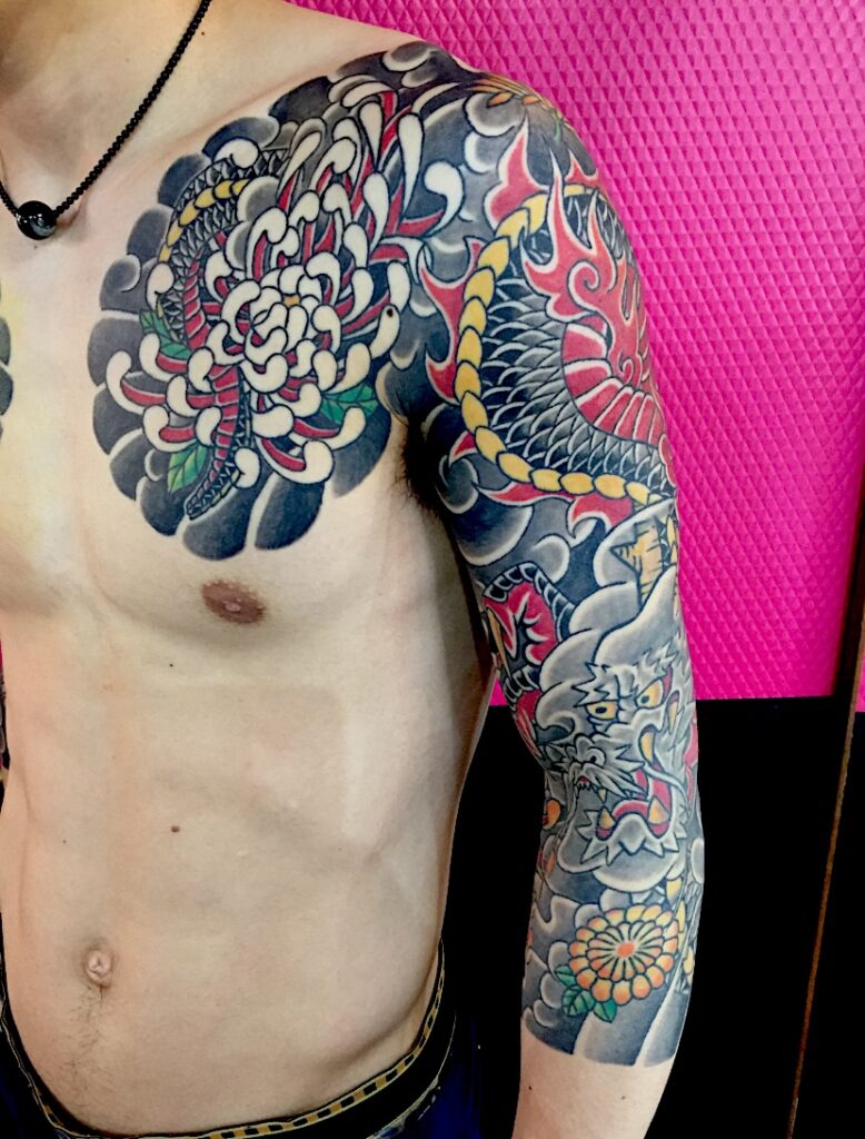 MARUXO として知られている 「マルシオ上岡」はユニークな作品を作るためにお客様の人生経験や物語を日本の文化、アニメとマンガ、の組み合わせでタトゥーで通して物語を語っています。